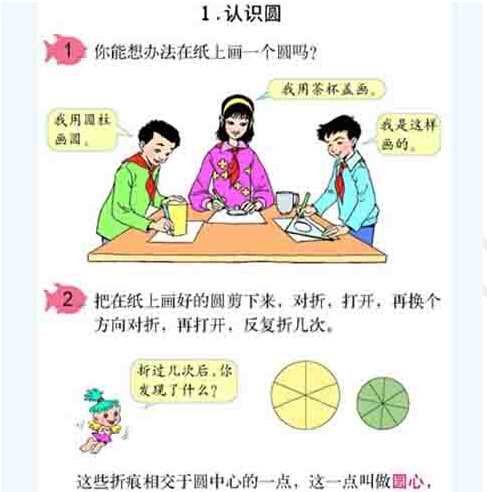 ①基础知识。本课中,让学生通过观察和动手操作,获得圆的相关知识,这样能够使学生牢固掌握。