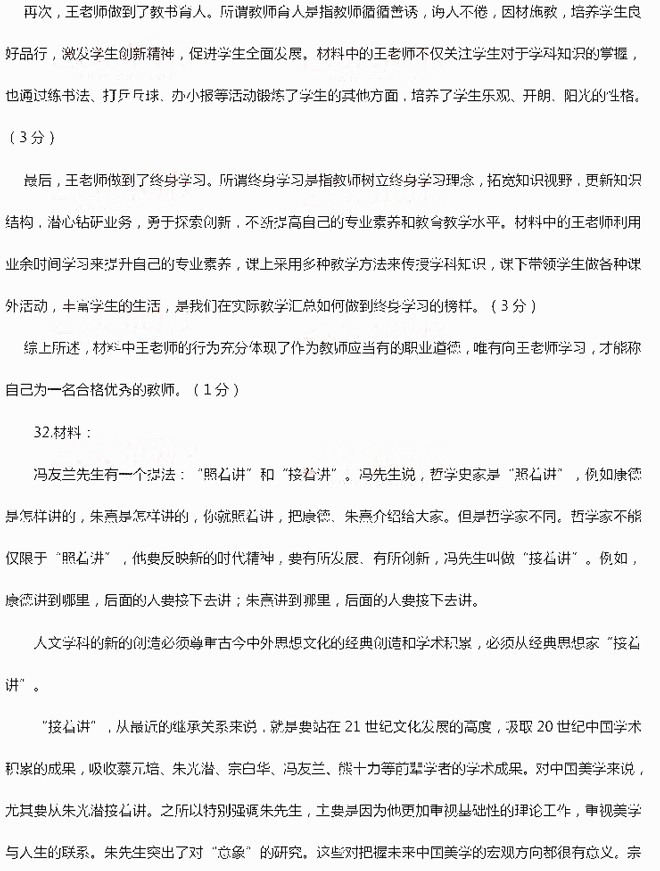 - 2020下半年中学教师资格证《综合素质》真题及答案