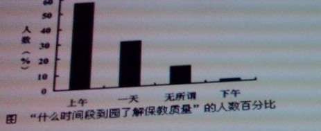 12、有研究者对幼儿园园长、教师做了一个调查,调查题目是“要全面真实地了解你园的保教质量,你认为最好什么时间段到你园?”调查结果如下图所示。