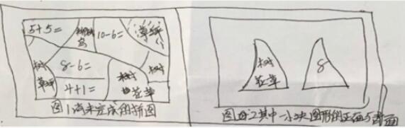 15.教师为了帮助大班幼儿了解春天的季节特征,同时在其中渗透数学教育,专门只做了一套“春天”的拼图(如图1),拼图底板是若干道10以内计算题,每一小块图形的正面是春天景色的一部分,背面是计算题的得数(如图2),教师希望幼儿根据计算题与得数的匹配找到拼图的相应位置。然而,材料投放后,教师却发现许多幼儿不用做计算题就能轻松完成拼图,也未对图片中的季节特征产生观察与探究的兴趣。