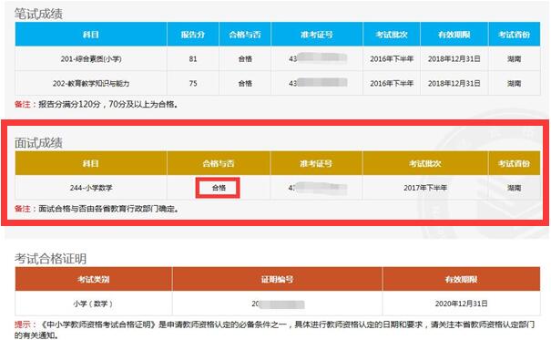 贵州2017下半年教师资格证面试成绩查询入口