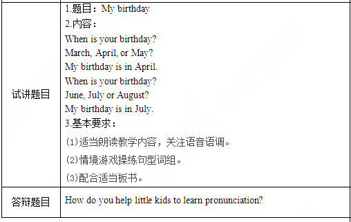 小学英语教师资格证面试试讲真题及解析:My birthday