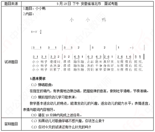 幼儿教师资格面试试讲真题及解析弹唱《小小鸭》
