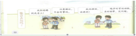 学生发言后,老师进行总结:看来大家都能够清楚地认识到了生活中什么事情是存在安全隐患的,是的,不能和同学在马路上大脑,不闯红灯,不吃过期的小零食,大家都说得非常棒。