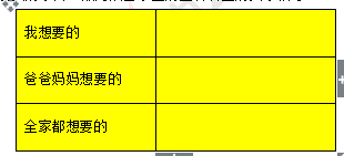 在课前,让学生制作一张调查表,自己先填上想要的东西,回家调查父母想要的,并把调查的内容填写在调查表里。在课堂上与小组成员交流自己的调查和家里的打算,并思考哪些钱是必须花的?哪些钱是可花可不花的?