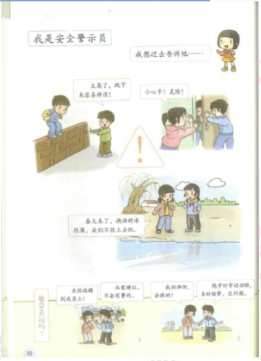 学生回答后,老师进行总结:看来大家都是合格的安全警示员,都能够发现他们的行为是不安全的。所以当我们身边朋友出现以上一些行为的时候我们应该及时的进行制止,告诉他们这些行为的危险性。