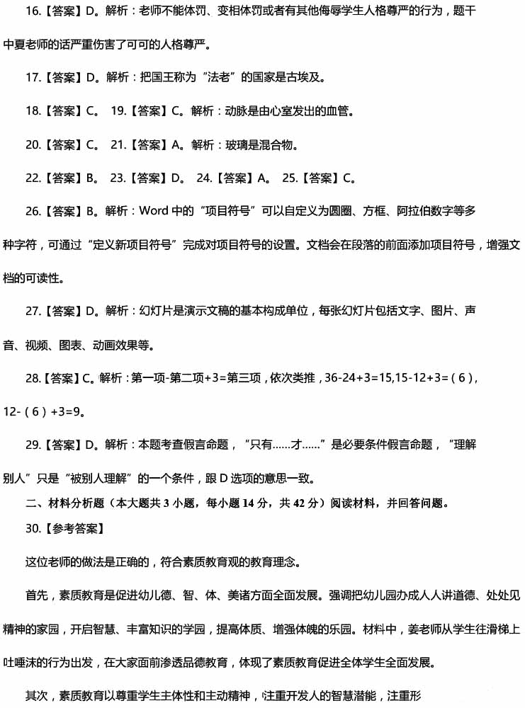 - 2020下半年教师资格证《高中体育》考试真题答案