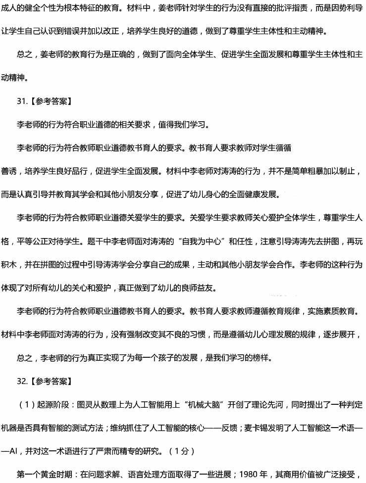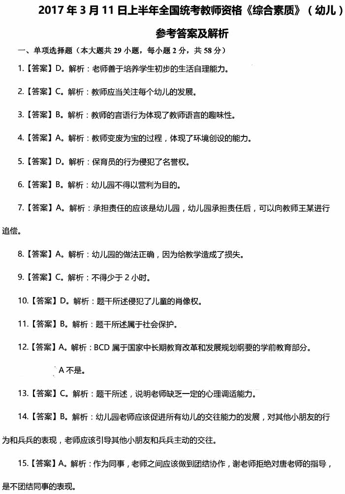 2017年上半年教师资格证考试真题及答案:幼儿综合素质
