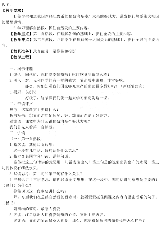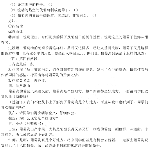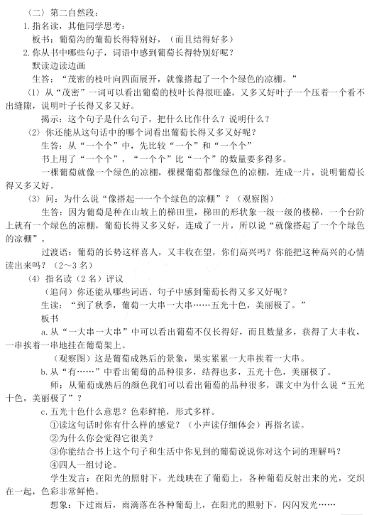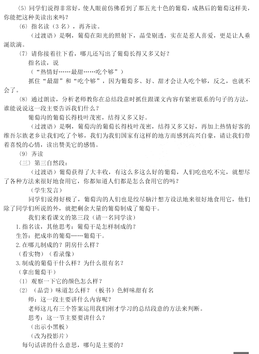 2018下半年小学语文教师资格证面试真题解析:《葡萄沟》