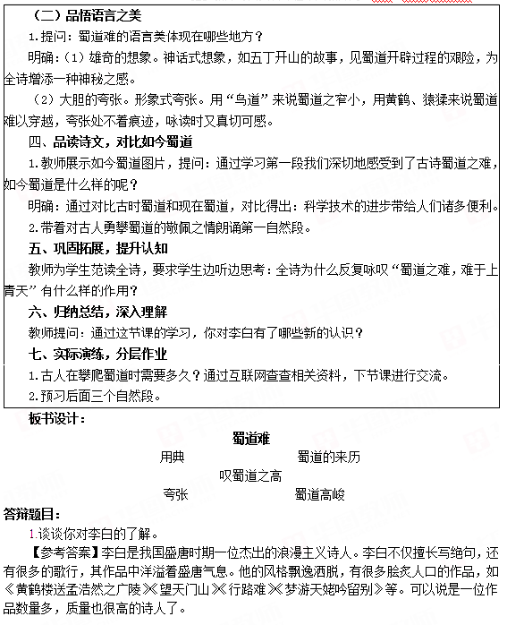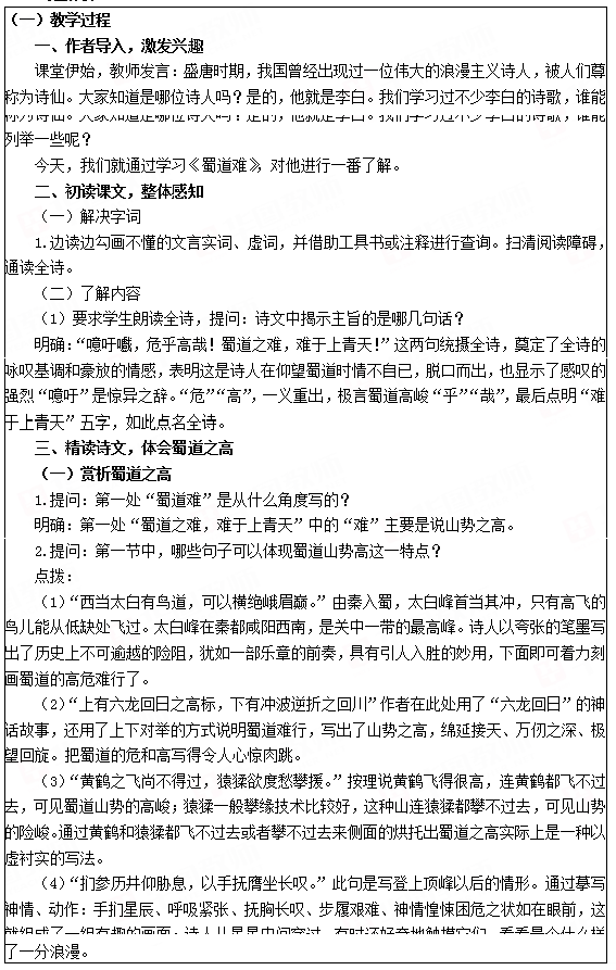 2018下半年高中语文教师资格证面试真题:《蜀道难》
