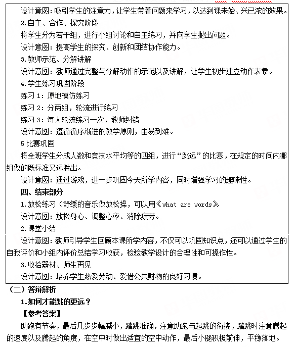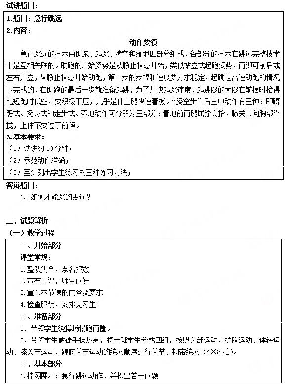 2018下半年小学体育教师资格证面试真题:急行跳远