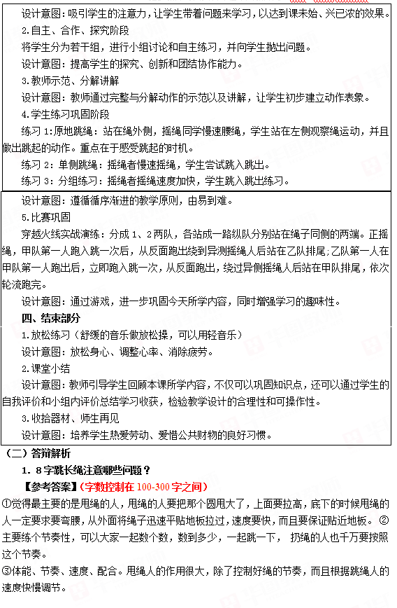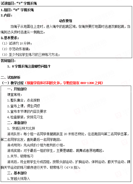 2018下半年小学体育教师资格证面试真题:8字跳长绳