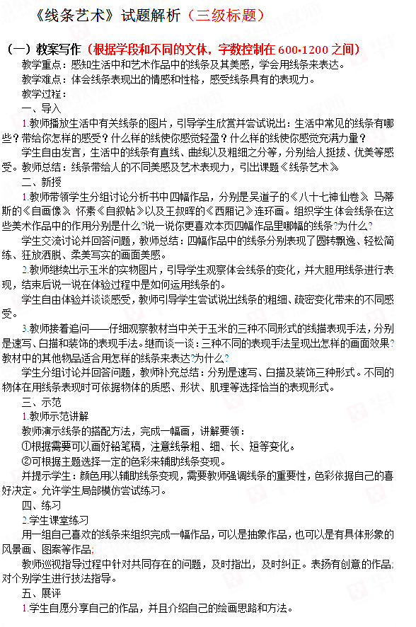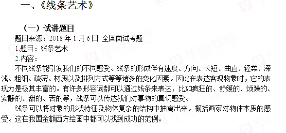 2018下半年高中美术教师资格证面试真题:《线条艺术》