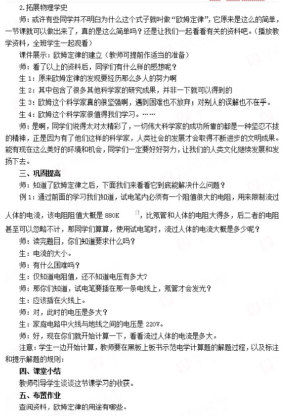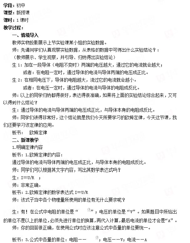 2018下半年初中物理教师资格证面试真题:欧姆定律