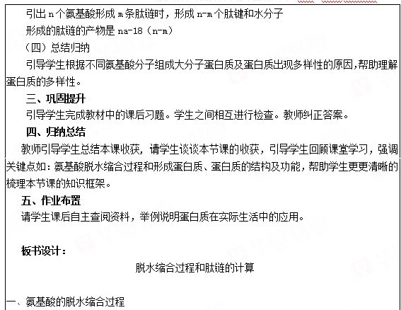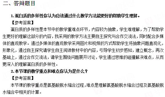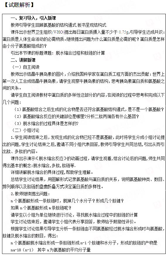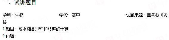 2018下半年高中生物教师资格证面试真题:脱水缩合过程和肽链的计算