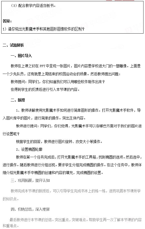 2018下半年初中信息技术教师资格证面试真题:光影魔术手
