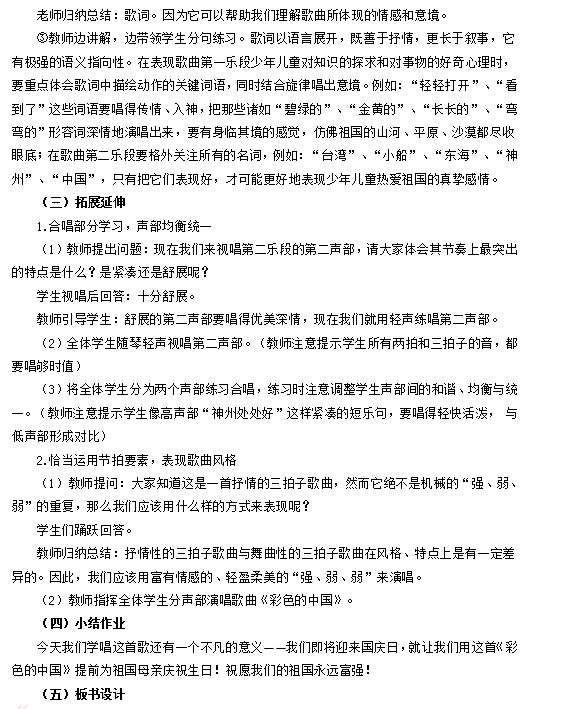 2018下半年初中音乐教师资格证面试真题:彩色的中国