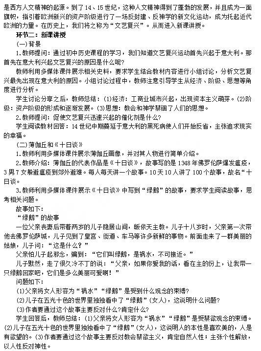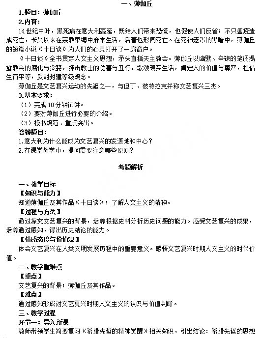 2018下半年高中历史教师资格证面试真题:薄伽丘