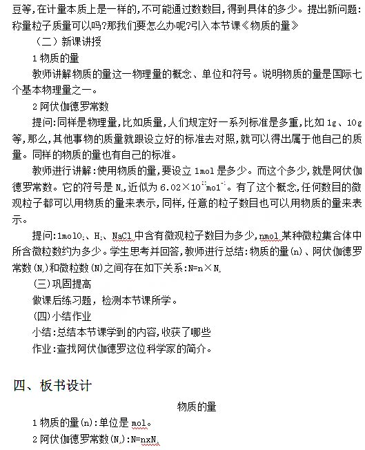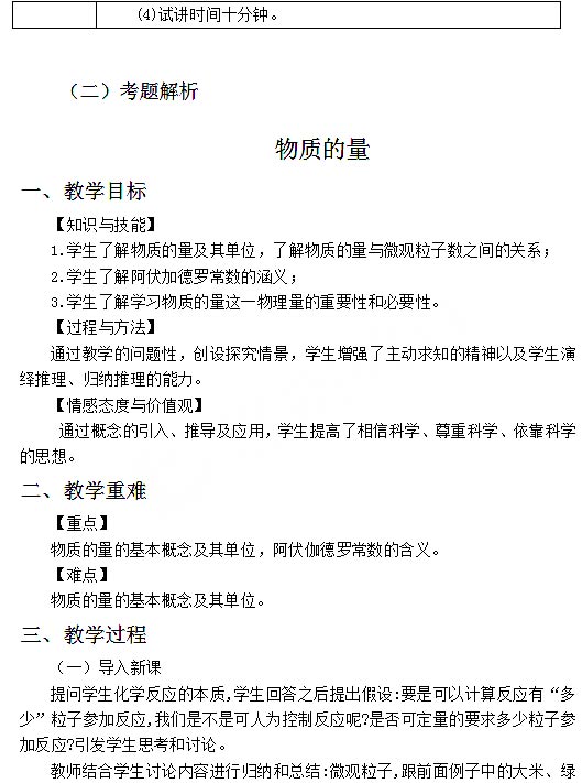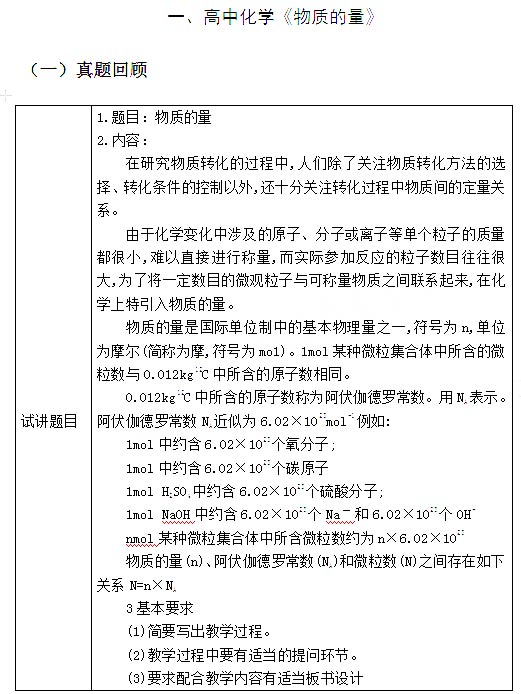 2018下半年高中化学教师资格证面试真题:物质的量