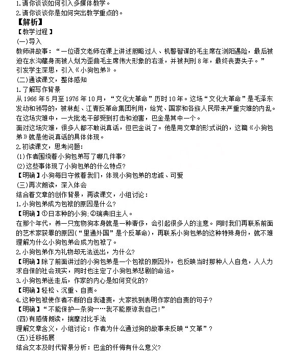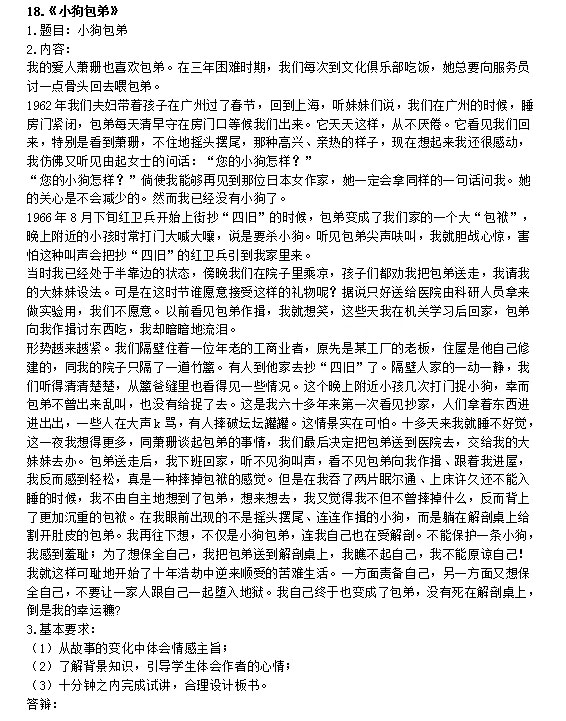 2018下半年高中语文教师资格证面试真题:《小狗包弟》
