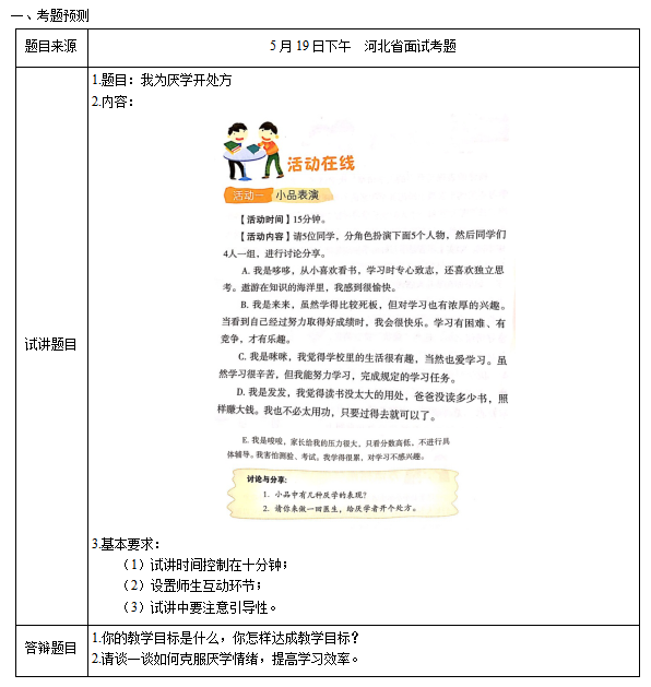 2.交流讨论:小品中有几种厌学的表现?请你来做一回医生,给厌学者开个处方。