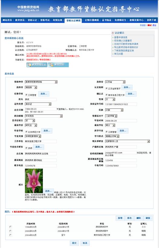 点击“确定”按钮,可以查看和修改填报的申请信息,如下图:
