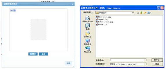 若发现照片有问题需要更换的,则需要点击照片右侧的“选择”按钮,此时弹出“选择和裁剪图片”对话框,点击对话框内的“选择图片”按钮,从弹出的“选择要上传的文件”对话框中选择欲重新上传的照片,点击“打开”按钮,新上传的照片则显示在“选择和裁剪图片”对话框内,点击对话框左上角的“-”“+”号,可以对选择的图片进行缩小或放大,便于裁剪合适的照片,最后点击该对话框内的“上传”按钮,新的图片就会替换掉以前的照片。