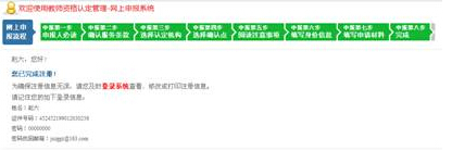 该页面的下部设置了“提交”按钮。申请人在填写完所有信息并仔细检查、确认无误后,点击“提交”按钮。此时,系统会对提交的信息进行检测,若符合要求,将给出“您已完成注册!”的提示,表明申报信息已经提交成功。