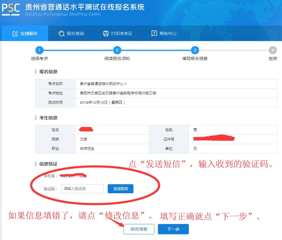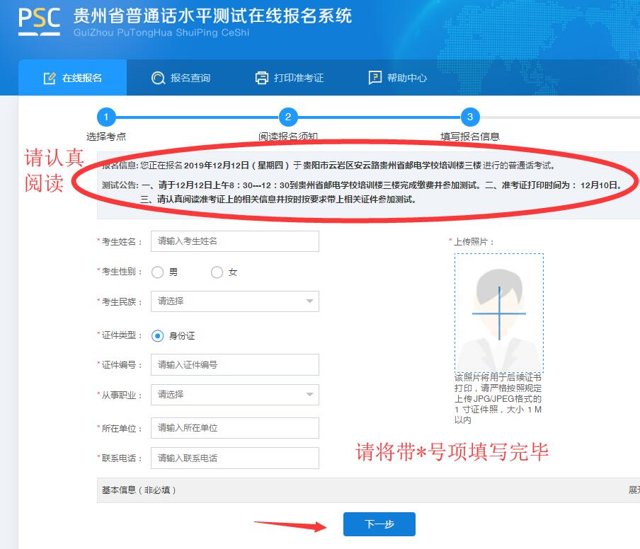 4.填写个人报名信息,带*号的所有项目必须填写,最后点“下一步”。
