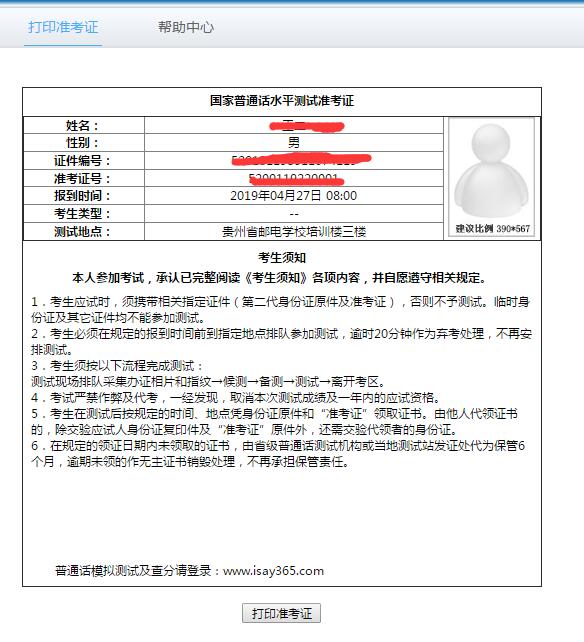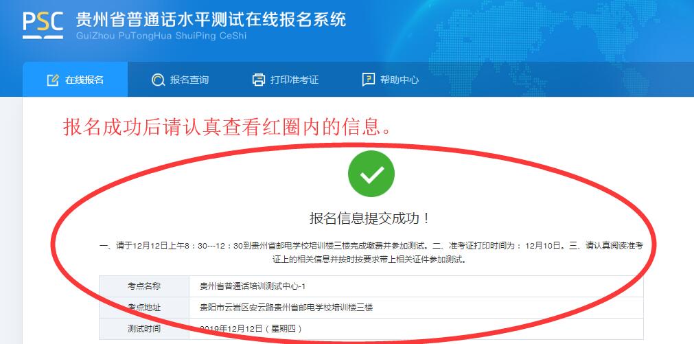 6.报名成功后,请仔细阅读页面提示并在规定的时间内打印准考证。