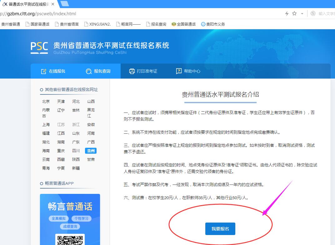 根据贵州省普通话培训测试中心的工作安排,从2013年1月份起,普通话水平测试将全部实行网上报名,不设现场报名点。需参加测试的考生,请登录(gz.cltt.org/baoming)进行报名。