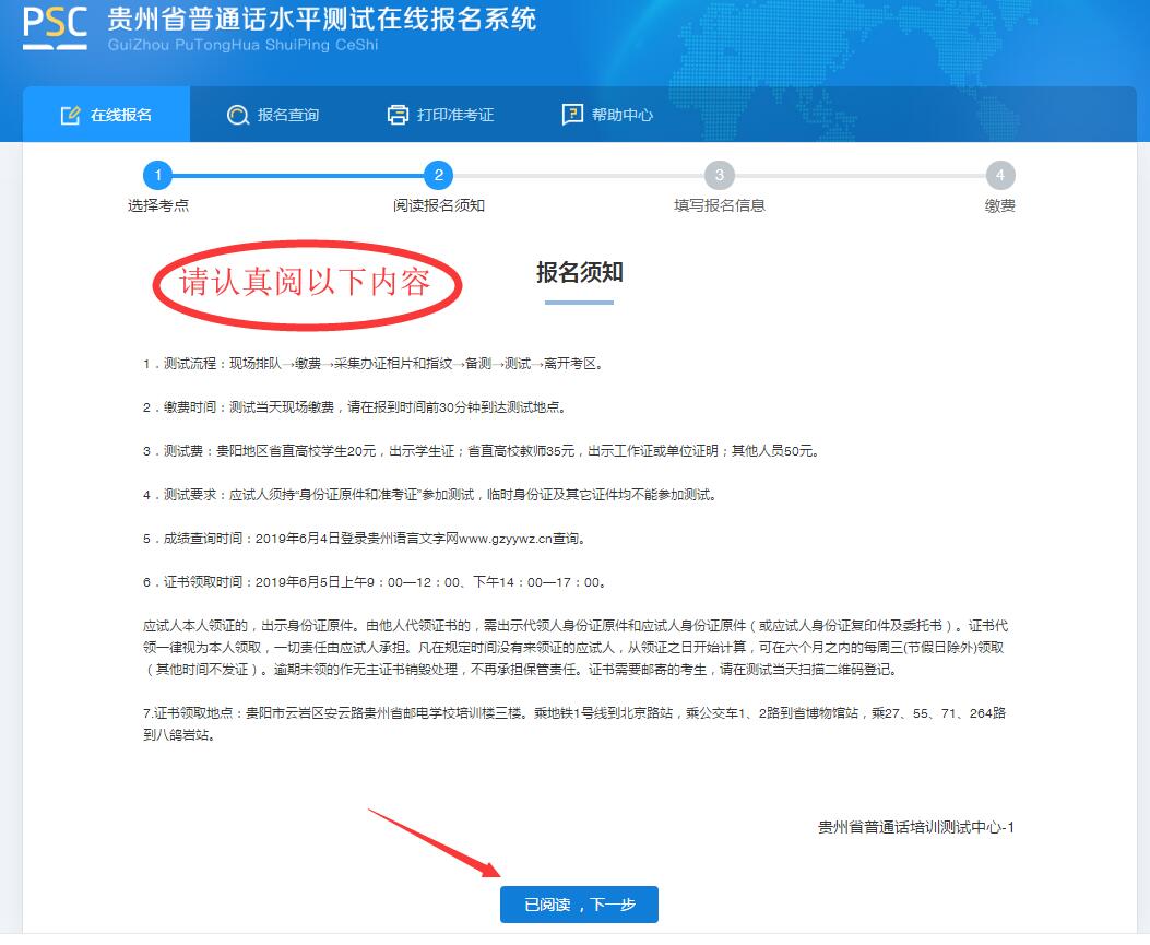 3.请仔细阅读“报名须知”内容,然后点“已阅读,下一步”。
