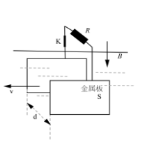 (1)法拉第曾提出一种利用河流发电的设想并进行了实验研究。实验装置的示意图如图所示,两块面积均为S的矩形金属板,平行、正对、竖直地全部浸在河水中,间距为d;水流速度处处相同,大小为v,方向水平;地磁场磁感应强度的竖直分量为B,水的电阻率为ρ;水面上方有一阻值为R的电阻通过绝缘导线和电键K连接到两金属板上。忽略边缘效应,求: