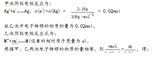 [试题] 甲、乙两个电解池均以Pt为电极,且互相串联,甲池盛有AgNO3溶液,乙池盛有一定量的某盐溶液。通电一段时间后,测得甲池中阴极质量增加2.16g,乙池中电极上析出0.24g金属,则乙池中溶质可能是()