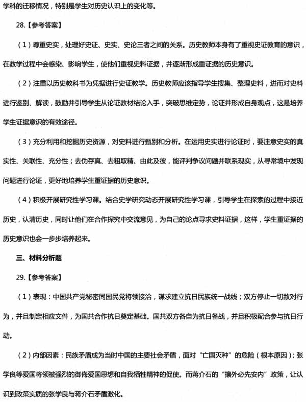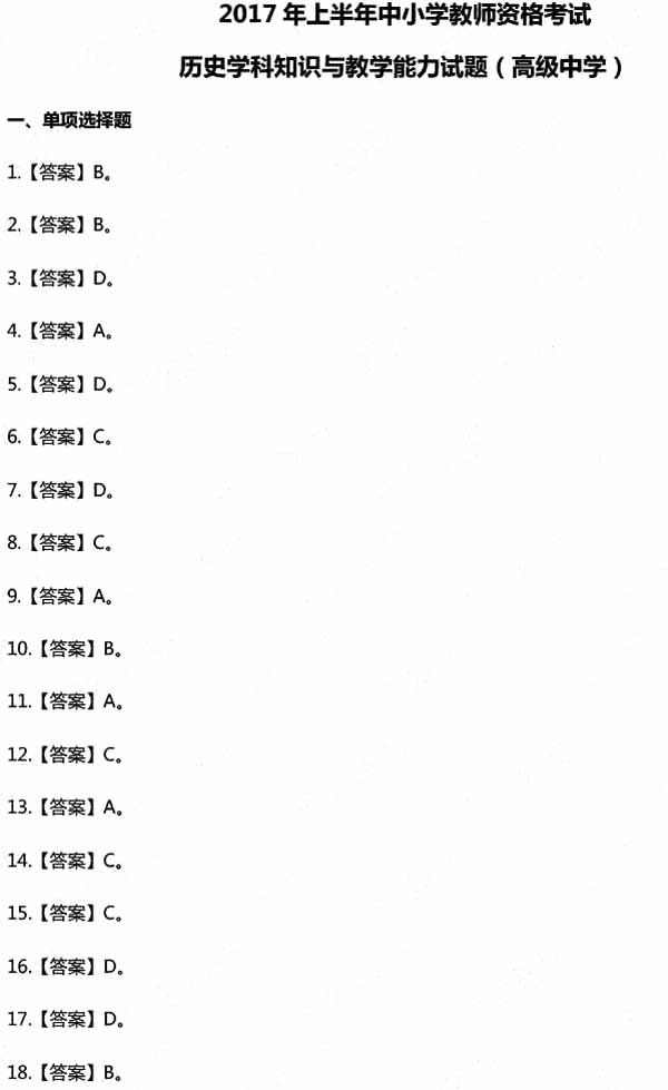 2017上半年中学教师资格证《高中历史学科知识》真题及答案