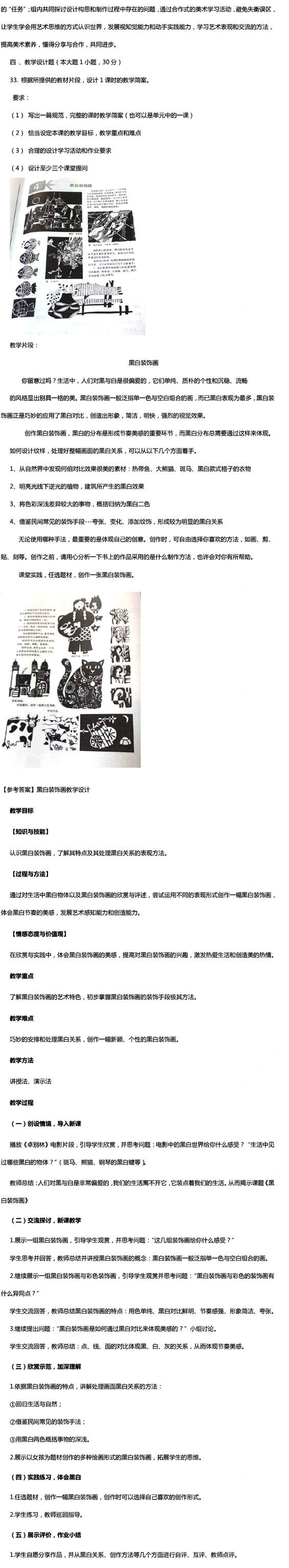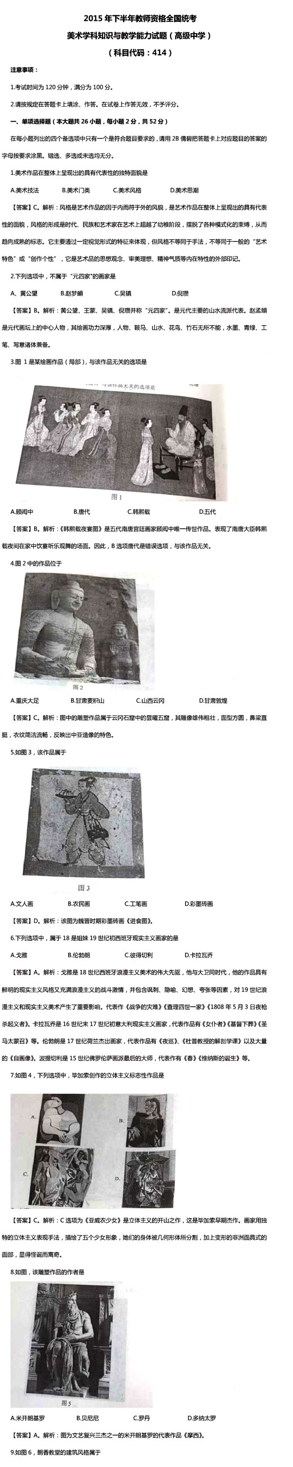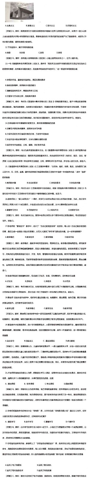 2015下半年教师资格证《高中美术学科知识》真题及答案
