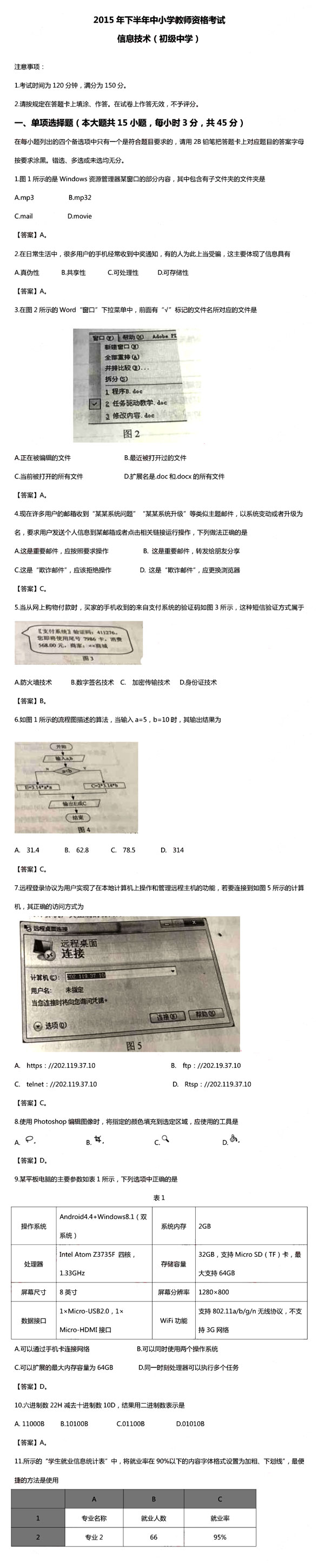 2015下半年教师资格证《初中信息技术学科知识》真题及答案